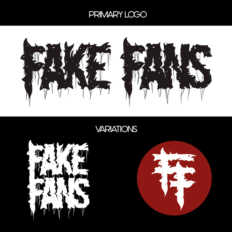 Visual identity for Fake Fans, a clothing brand inspired by alternative and heavy music.